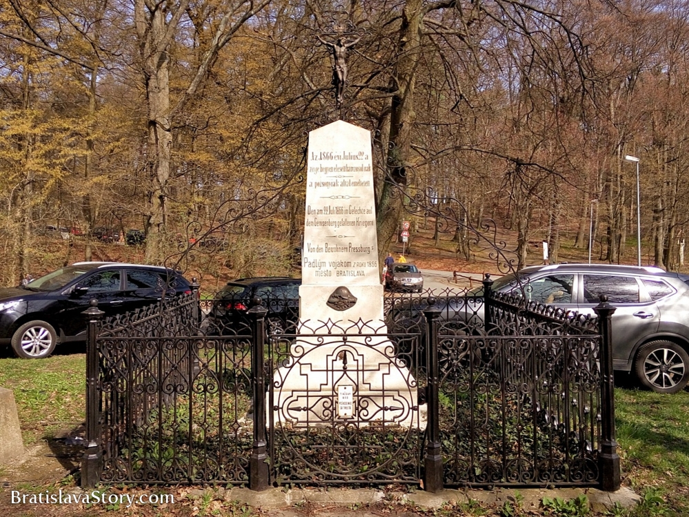 V roku 1866 sa medzi Pruskom a Rakúskom odohrala vojna o nadvládu nad nemecky hovoriacimi krajinami. Pri tejto bitke zahynulo 100 pruských vojakov a 600 rakúskych. Časť padlých vojakov bola pochovaná na cintoríne v Lamači, kde im dali miestni obyvatelia postaviť pamätník ako spomienku. Vyše 20 rakúskych a pruských vojakov je pochovaných v spoločnom hrobe na Kamzíku.